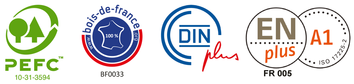 La certification de pellet NF Biocombustibles solides est la marque française qui atteste de la certification des pellets. La certification de pellet DIN plus correspond à la marque allemande de certification des granulés de bois, délivrée par DIN CERTECO. Enfin, la certification de pellet EN plus A1 est la marque européenne de certification des granulés de chauffage, portée par l’European Pellet Council à l’échelle européenne et l’association professionnelle Propellet à l’échelle de la France.